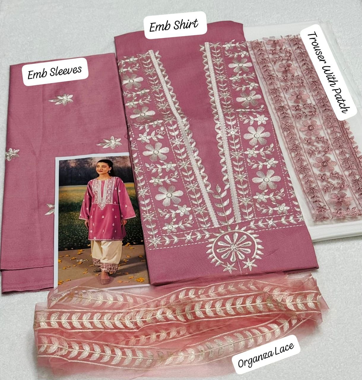 →Organza Embroidered Lace For Daman , Ghera & Sleeves